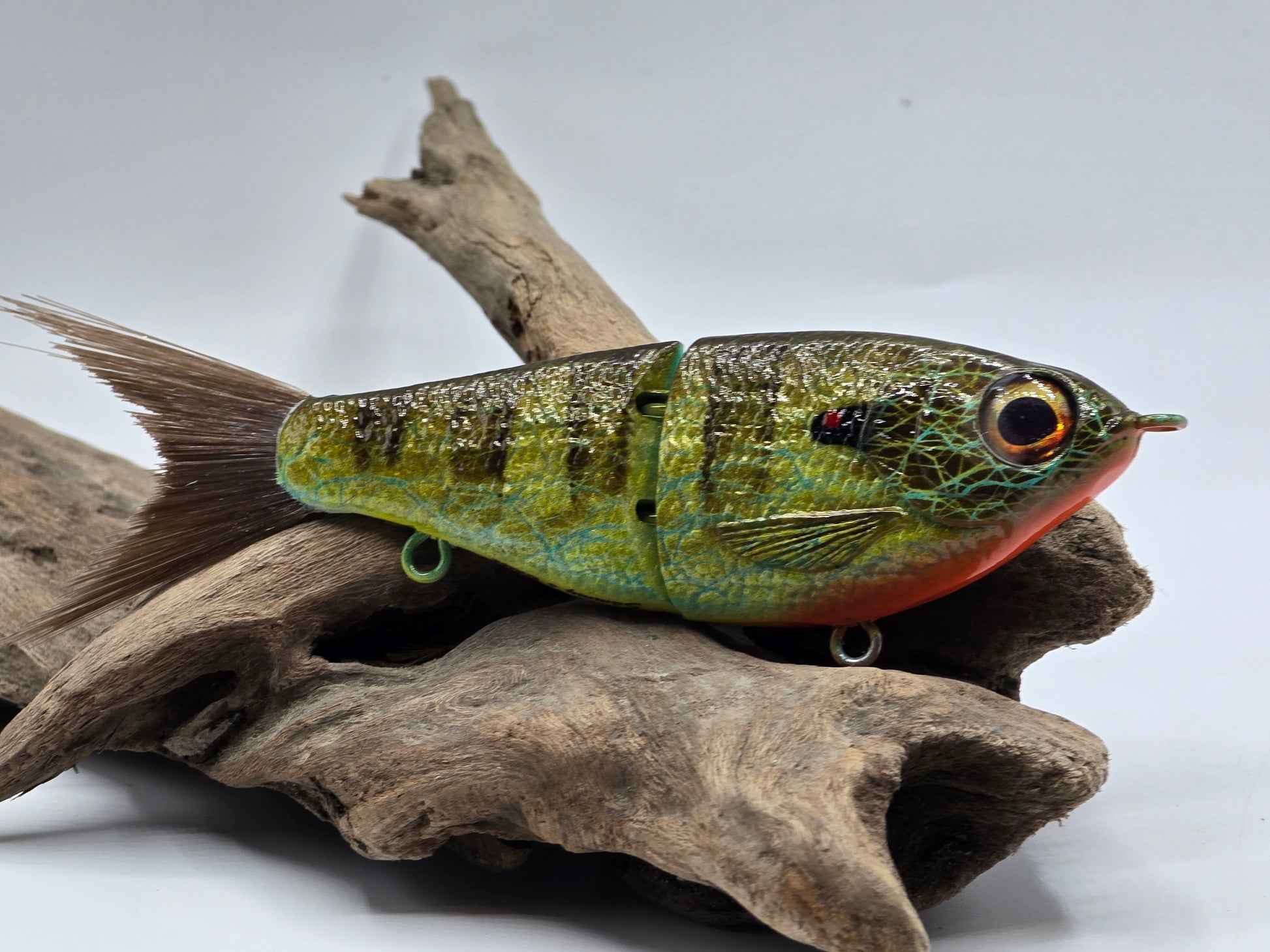 The Wee shad is a scaled down version of the big belly shad. Coming in at only 5" with a weight of just over a 1/2 ounce this bait is perfect for everyone. I can't wait to show this to some smallmouth on the rivers around here. This lure is also ideal for the fisherman who isn't set up to throw those big glides and swimbaits but wants to see what they are like. This lure is light enough to throw on your everyday fishing rod.